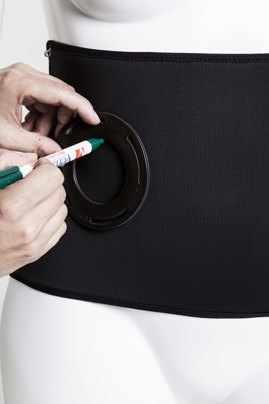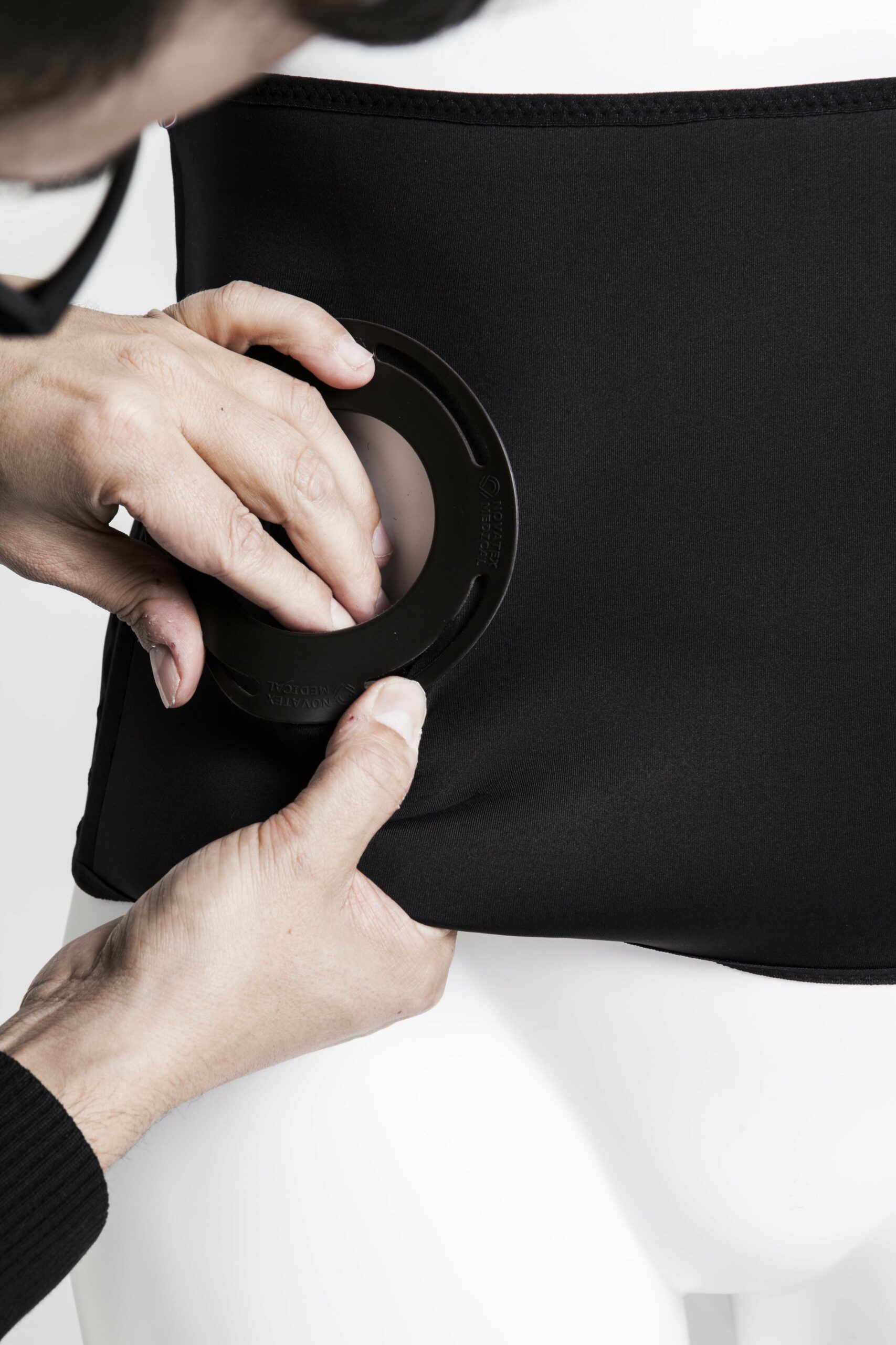 Pour s’adapter au plus grand nombre, la NOVASTOM standard est proposée en 8 tailles, couvrant des tours de taille allant de 72 à 129 cm. Afin de faciliter la mise en place initiale, une solution complète incluant notre dispositif pour stomie (protégé par un brevet) peut être commandée conjointement.